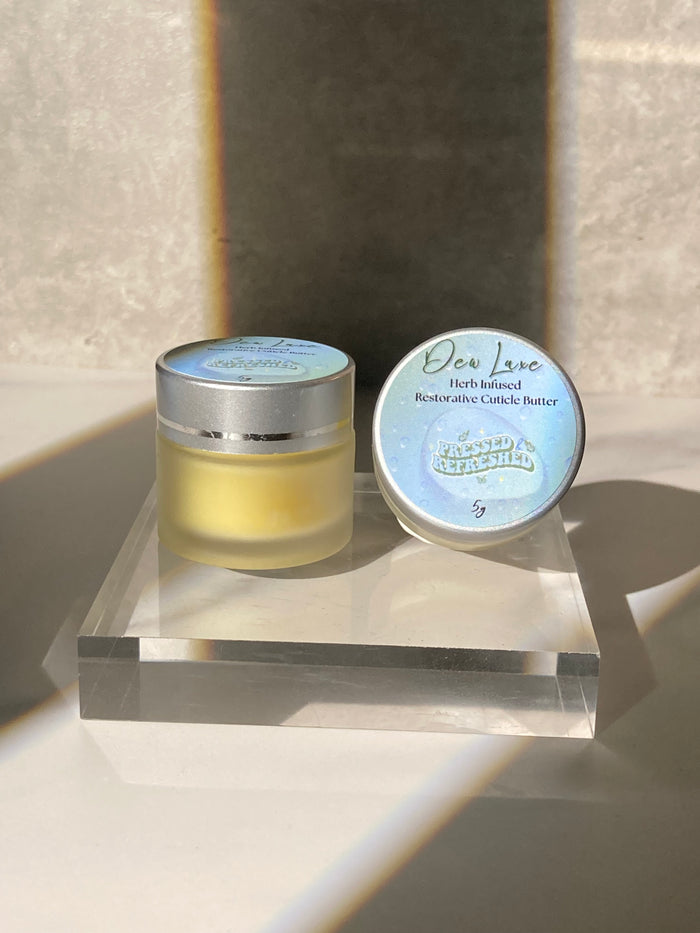 I blend a combination of high quality plant-based oils and butters to harness their moisturizing and restorative properties. I hand-picked each of my ingredients for their benefits so that the Dew Luxe cuticle butter can work hard to restore your cuticles and hands.